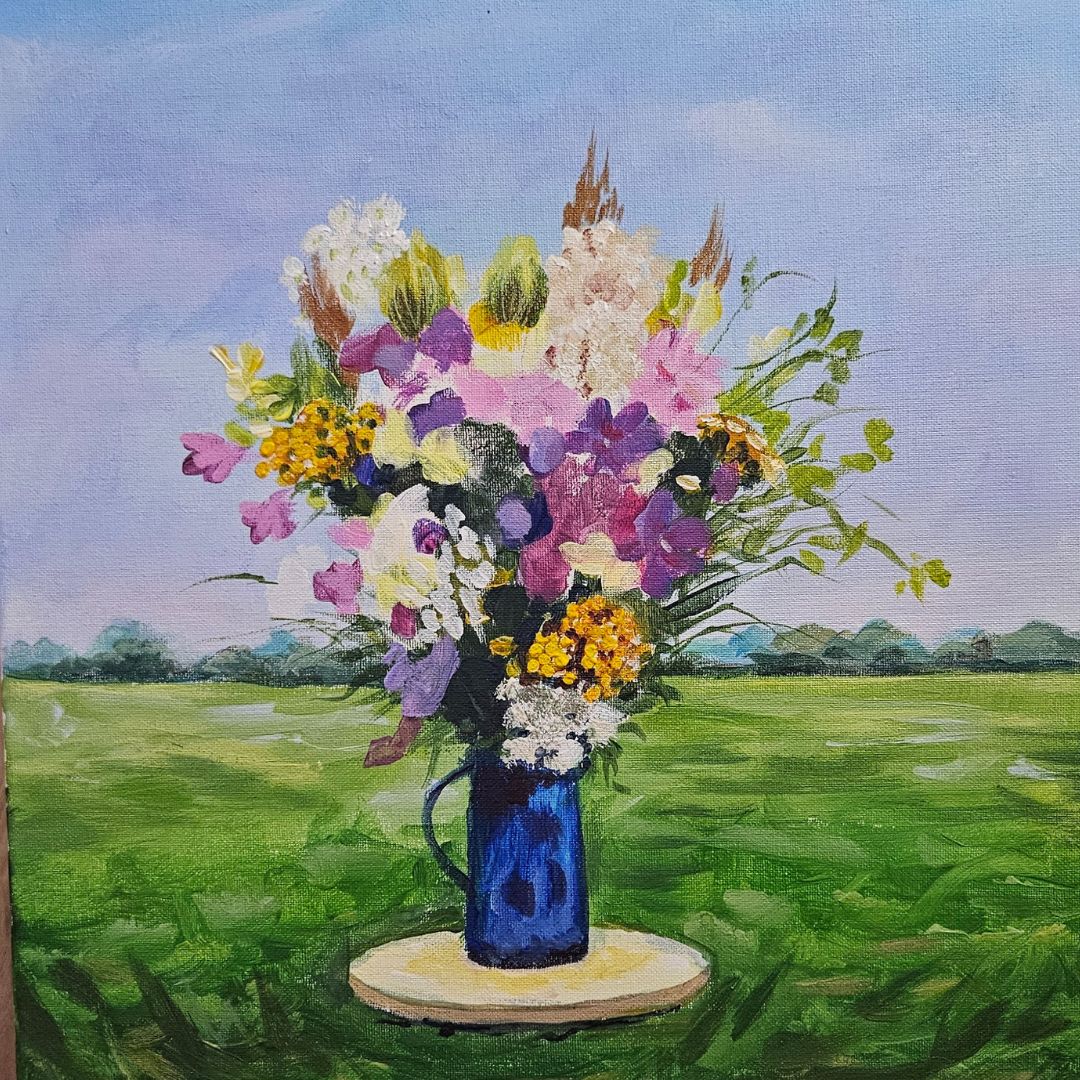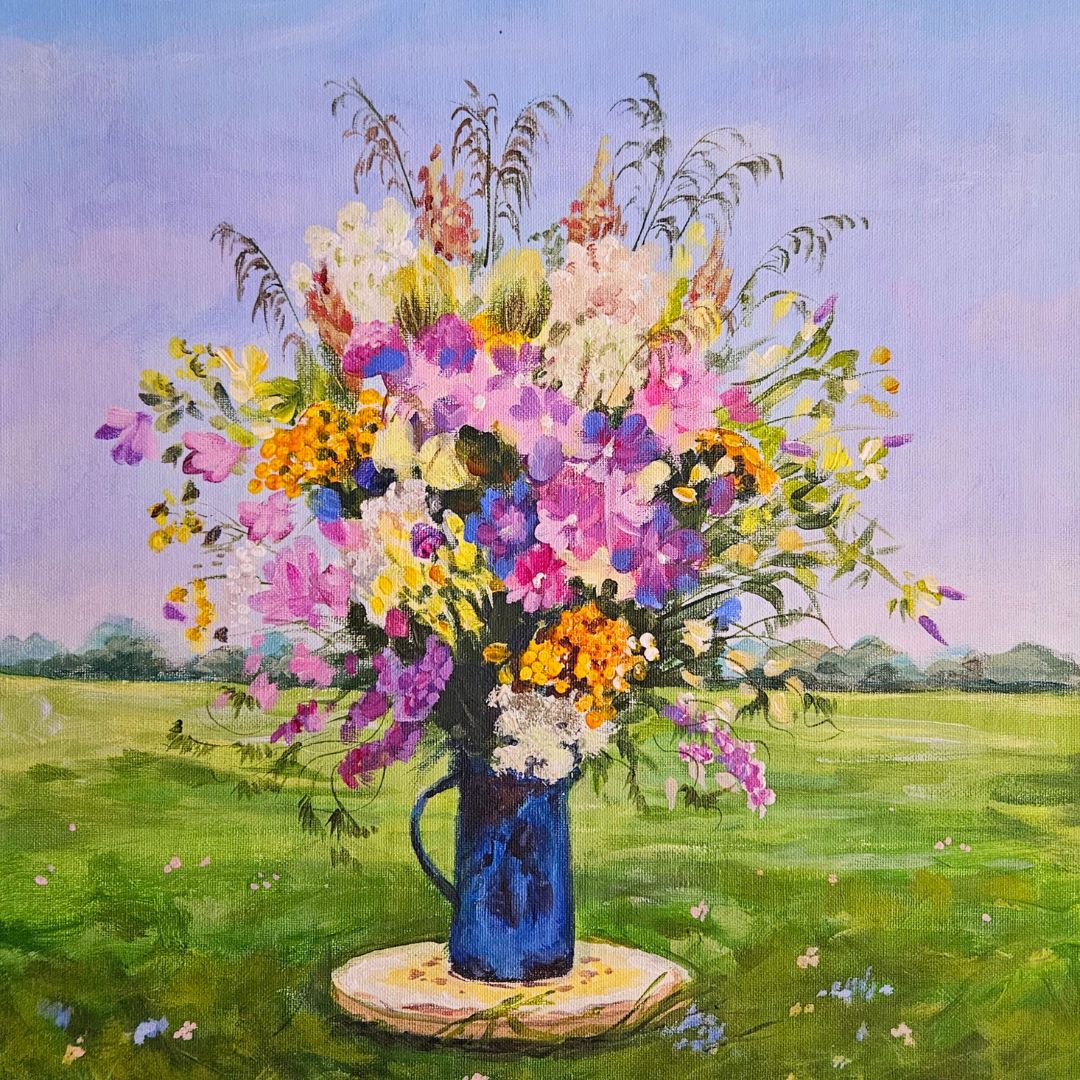 Polne kwiaty w wazonie malowane farbami akrylowymi